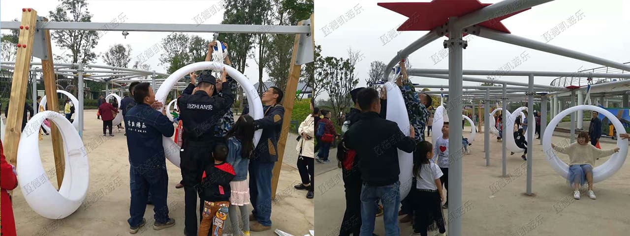 此項目包含:彩虹傘、月光秋千、蝴蝶蹦床、樹枝秋千、敲打樂器、組合秋千、搖籃秋千等產(chǎn)品!