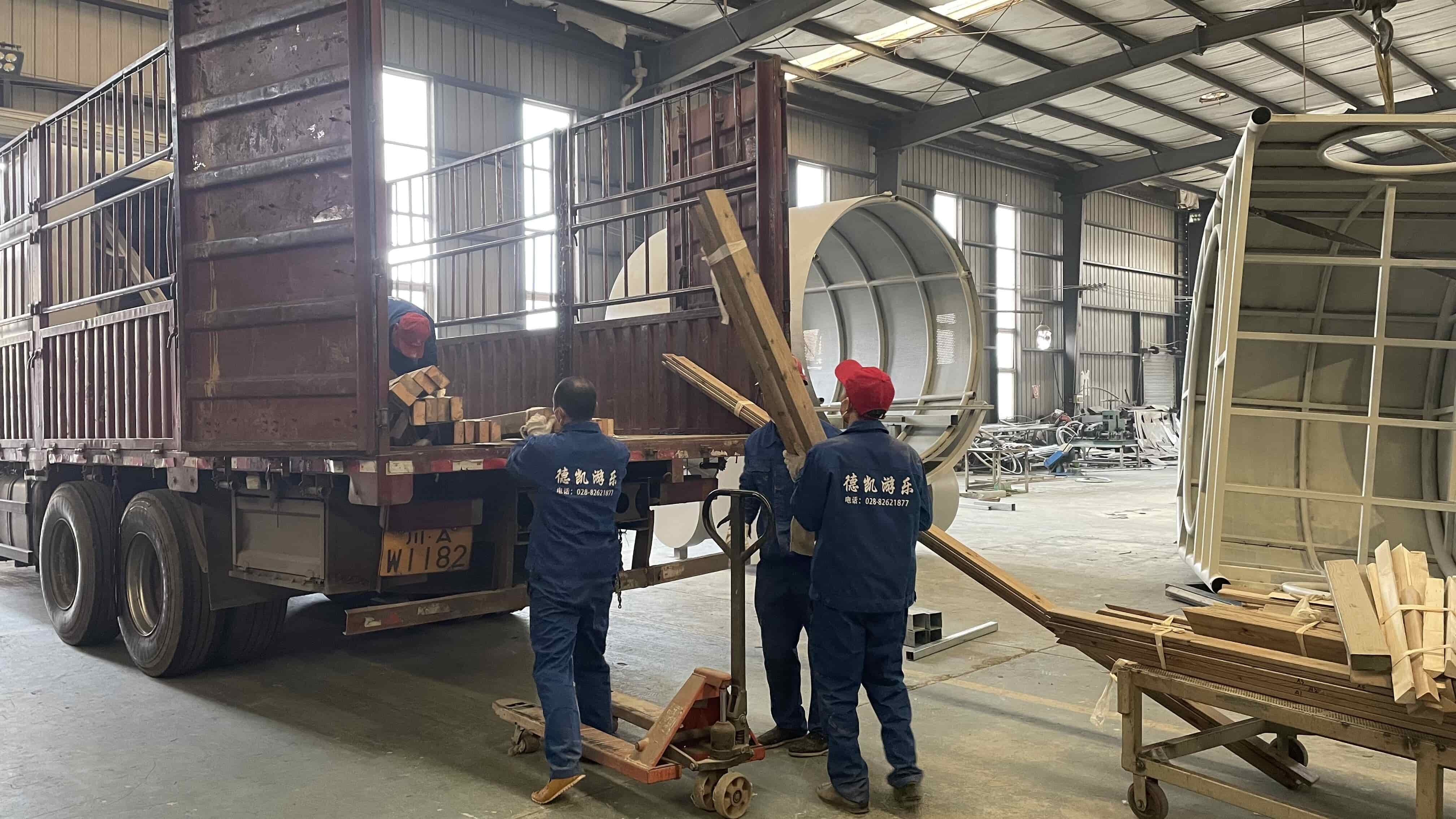 火山火車主題樂園設施開始出庫 安裝