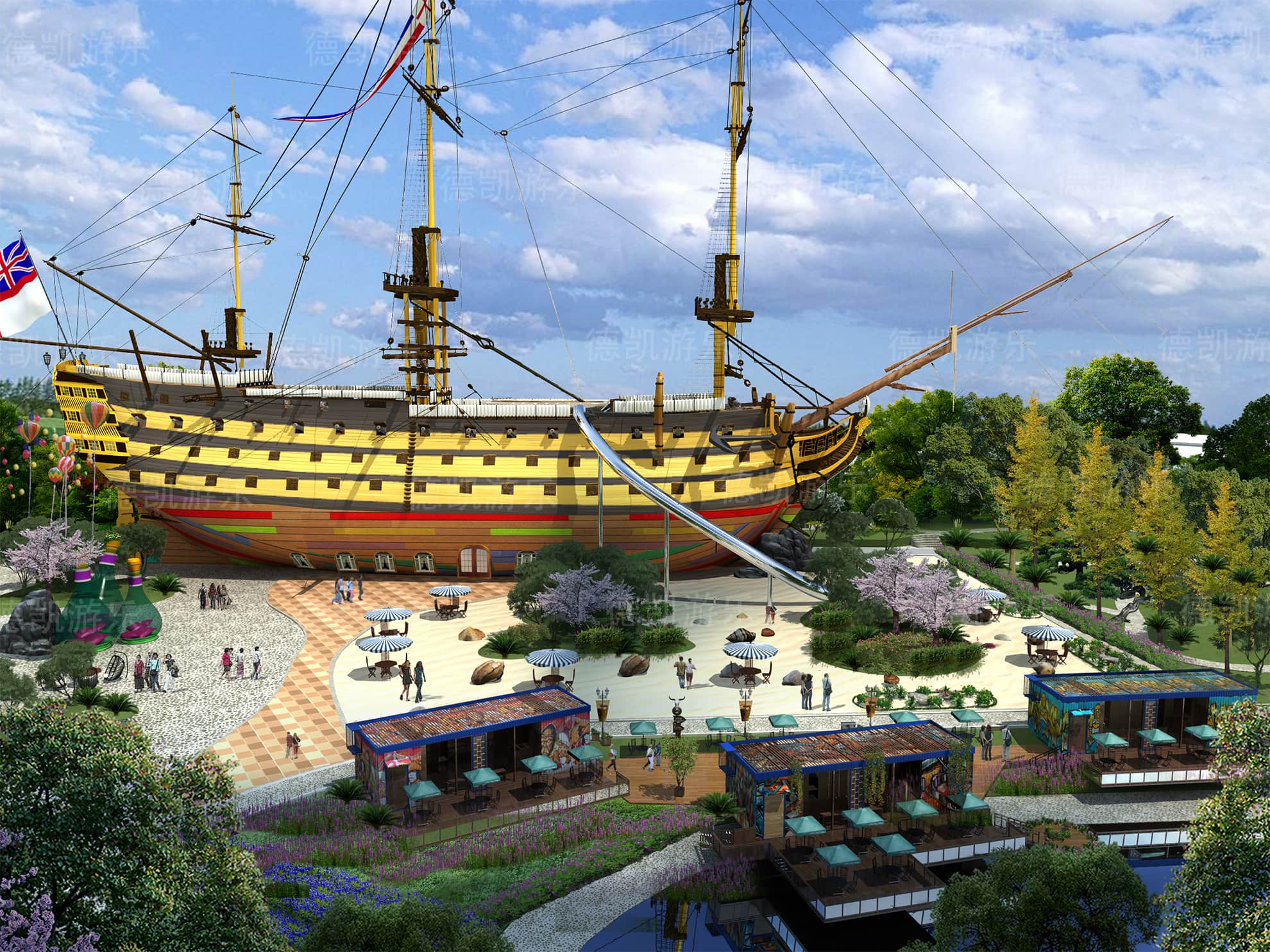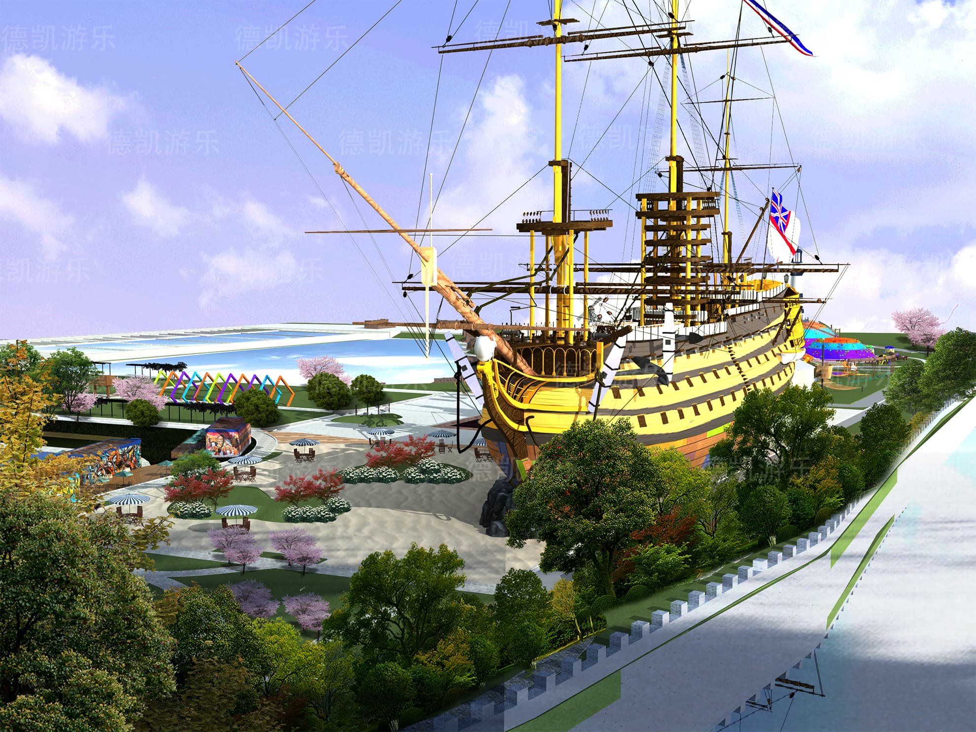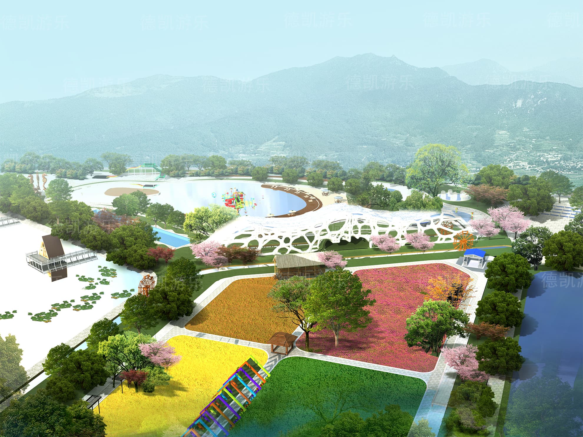 后期的效果圖是已經比較完美的了,不僅是設施設備的完善還是整體規(guī)劃細節(jié),景觀性細節(jié)幾乎完美的效果圖,客戶可以從效果圖看到建成后的游樂園的整體效果,有利于客戶評估客源定位。