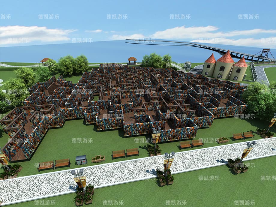 迷宮,指的是充滿復雜通道,很難找到從其內部到達入口或從入口到達中心的道路,道路復雜難辨,人進去不容易出來的建筑物。在世界的不同文化發(fā)展時期,這些建筑物始終吸引人們沿著彎彎曲曲、困難重重的小路吃力地行走,尋找真相。在迷宮里面是沒有技巧可言的,只有靠孩子們自己慢慢探索。