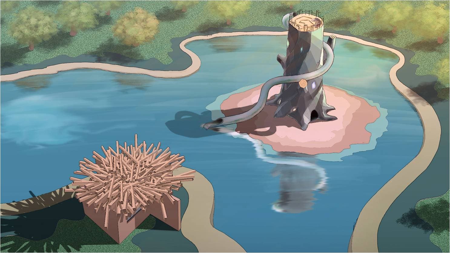 在王國(guó)的東北方向,生命之河的中央有一棵象征王國(guó)生命的神木。只有得到國(guó)王的允許,王國(guó)的孩子們才能夠踏上這神圣的頂峰。當(dāng)你踏上這神圣的頂峰,將會(huì)授予鸚鵡勇士的稱號(hào)。與之相望的是岸邊巨大的巢穴,這是鸚鵡王國(guó)孕育勇士的地方,神樹將給予它庇護(hù)。