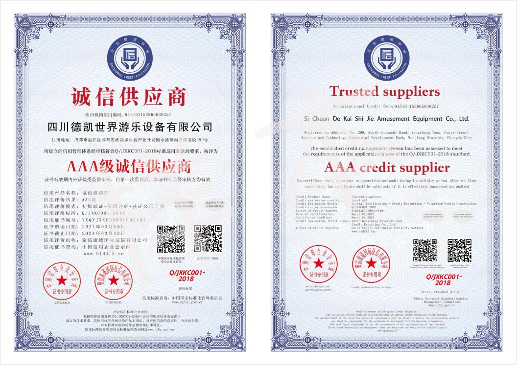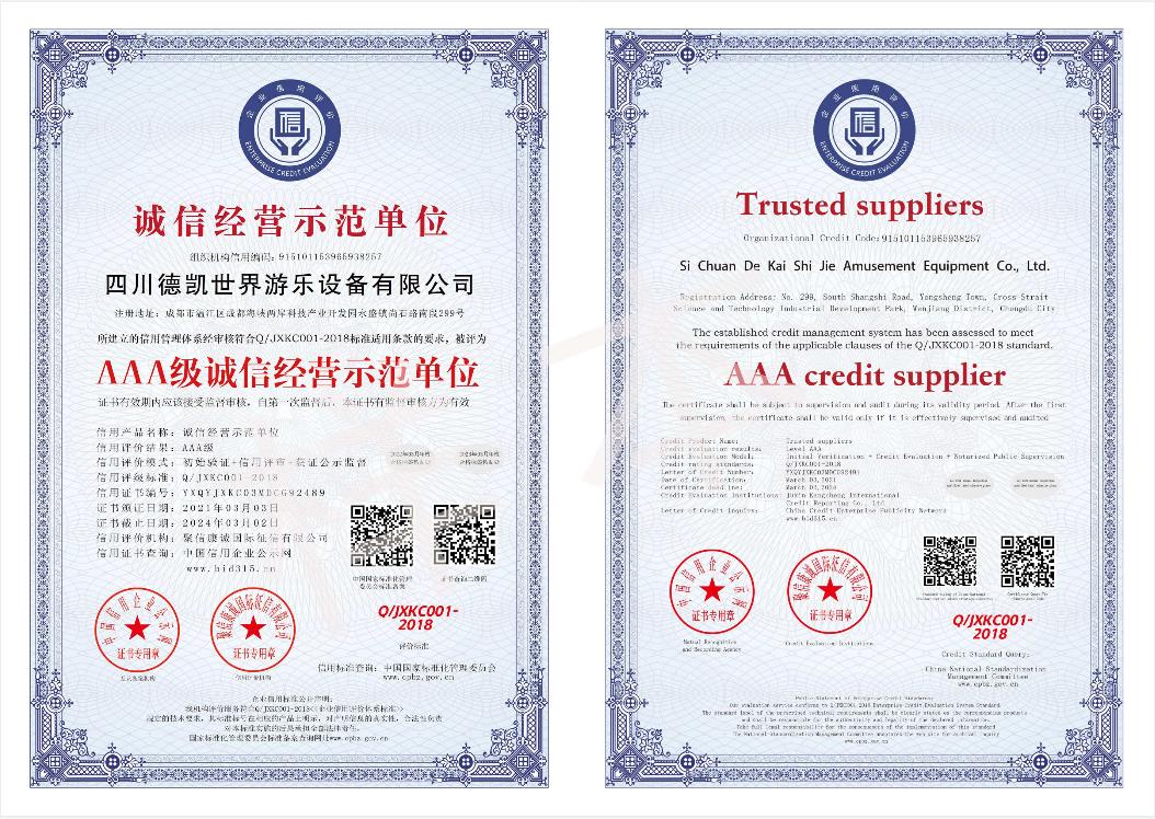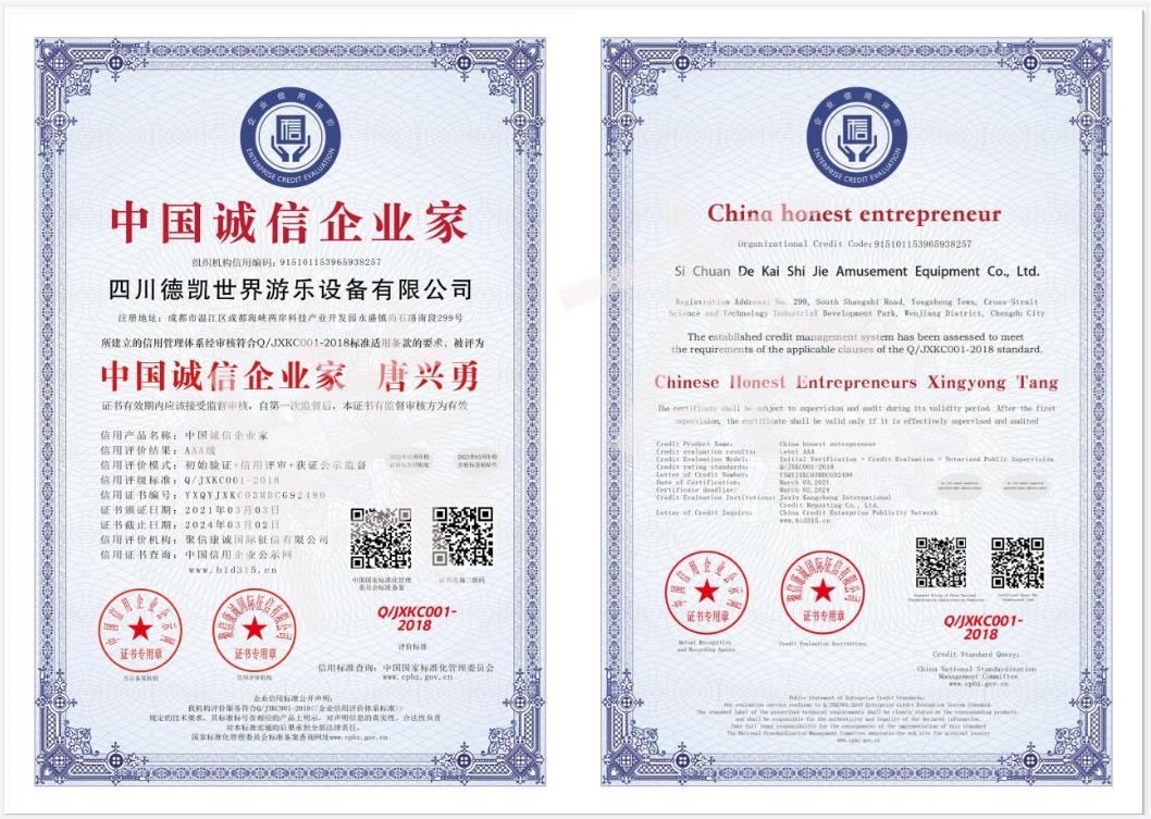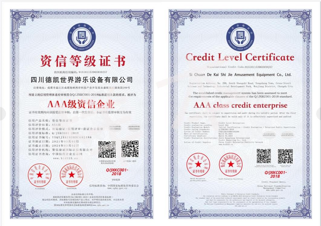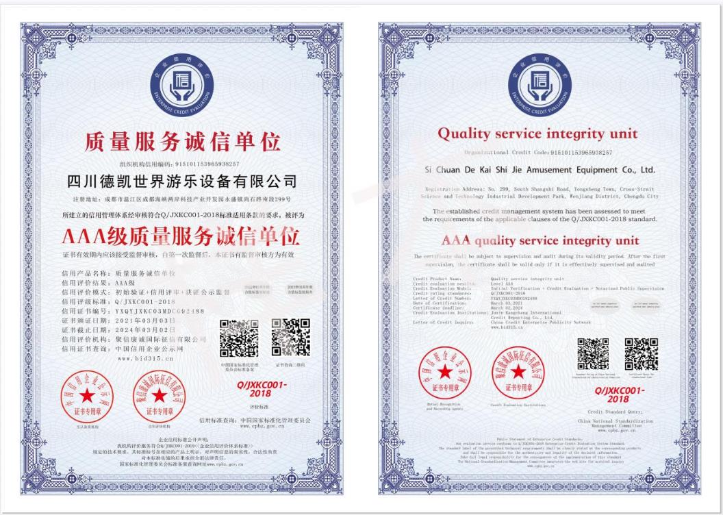 四川德凱世界游樂設(shè)備有限公司是一家集研發(fā)、生產(chǎn)、銷售、服務(wù)于一體的兒童游樂設(shè)備廠家,并衍生打造兒童游樂園,形成了從項(xiàng)目調(diào)研、整體規(guī)劃設(shè)計(jì)、設(shè)備研發(fā)生產(chǎn)、施工安裝、售后運(yùn)營投資、項(xiàng)目幫扶合作一體化的全產(chǎn)業(yè)鏈布局。德凱游樂一直奉行“誠信,質(zhì)量,安全”的經(jīng)營理念,不斷創(chuàng)新產(chǎn)品和技術(shù)提升,服務(wù)全國客戶超5000家以上,先后孵化100~1000畝以上多個(gè)大型游樂園項(xiàng)目方案落地,實(shí)戰(zhàn)經(jīng)驗(yàn)豐富,深受客戶認(rèn)可和好評。